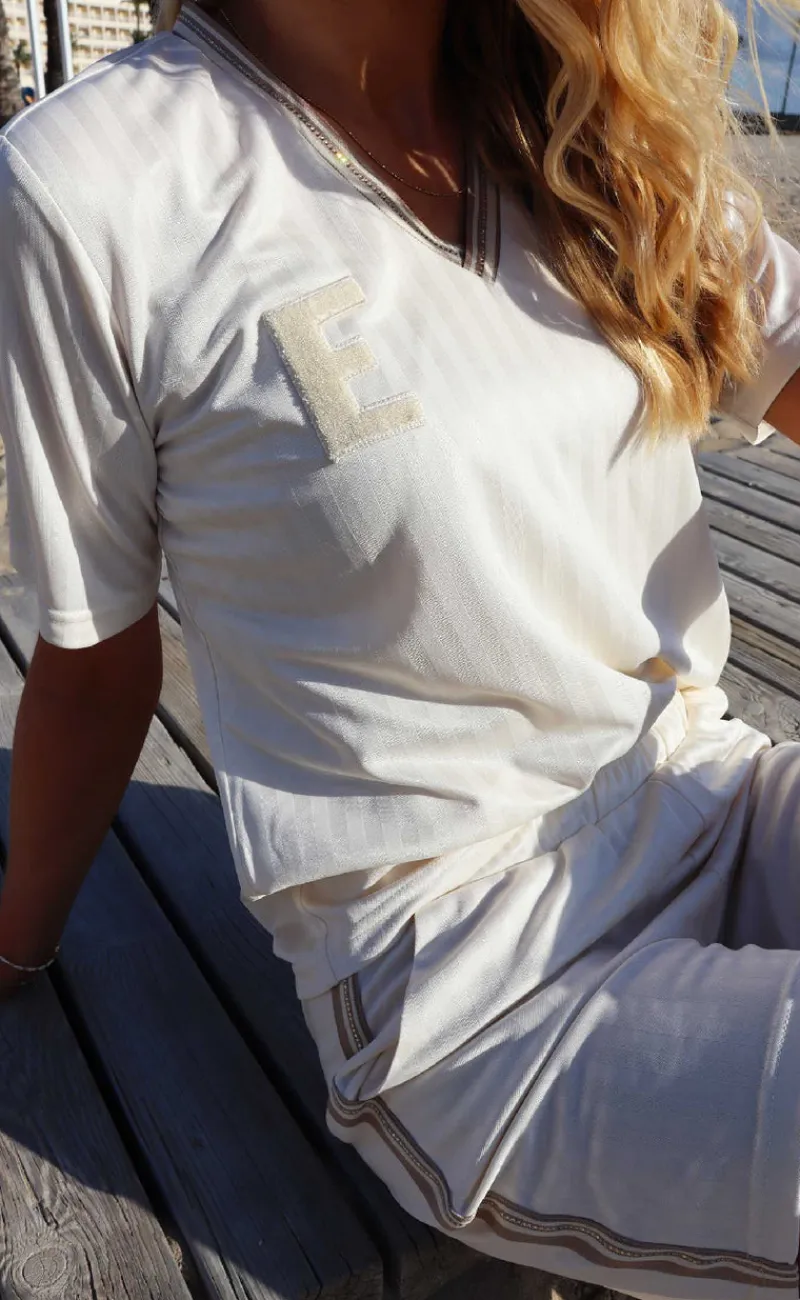 Lækre shorts fra Liberte i et spory look, i beige med en brun stribe.