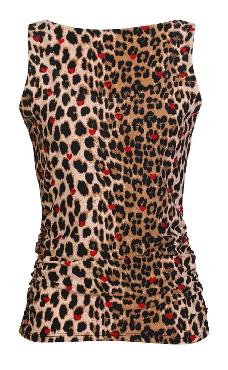 Tætsiddende top fra Liberte i et leoprint med røde hjerter.