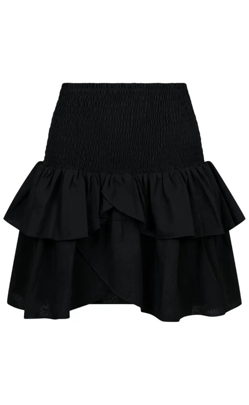 Denne nederdel er kort, med elastik i tajlen og flæser.