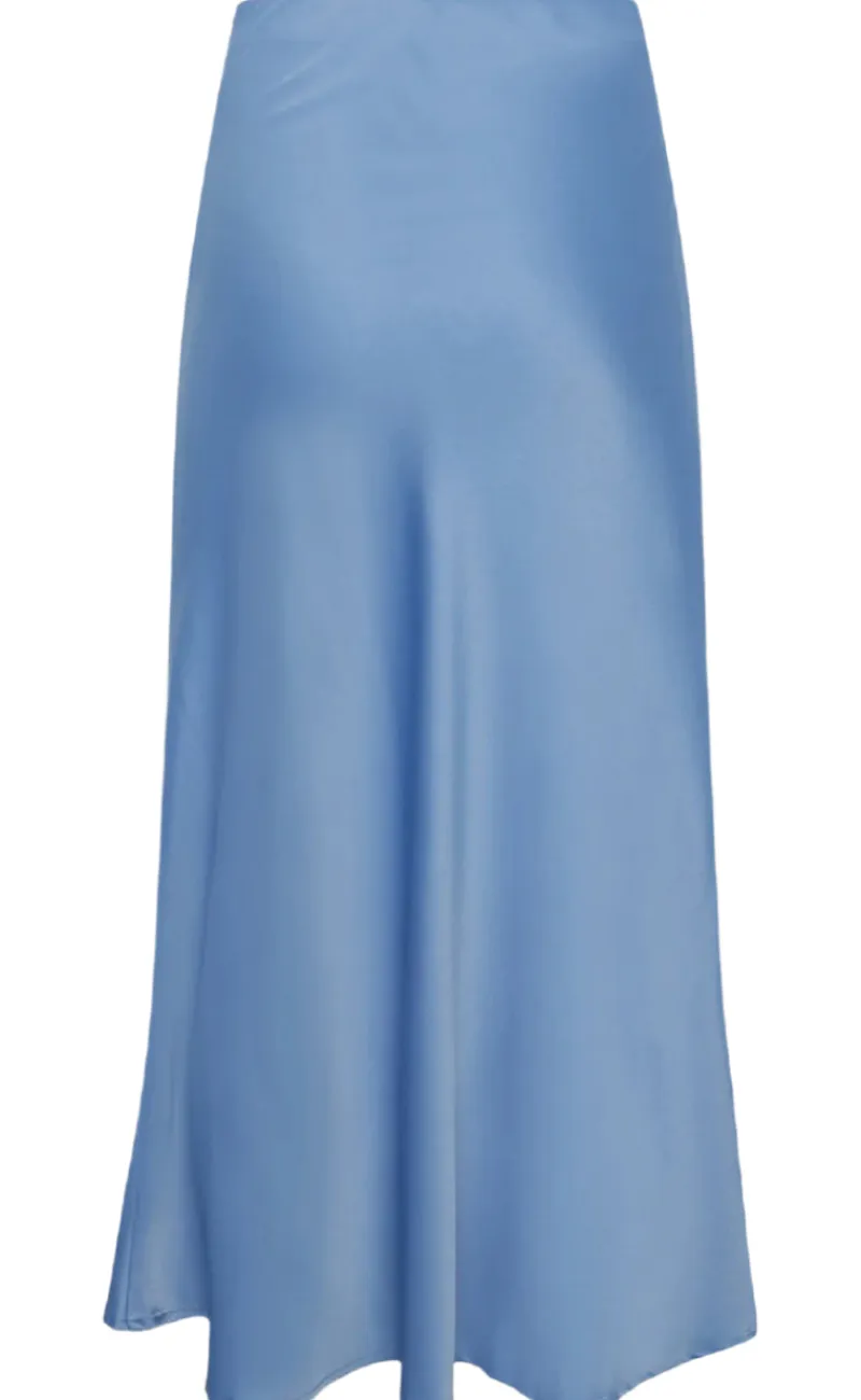 Maxi satin nederdel fra Moves i blå.