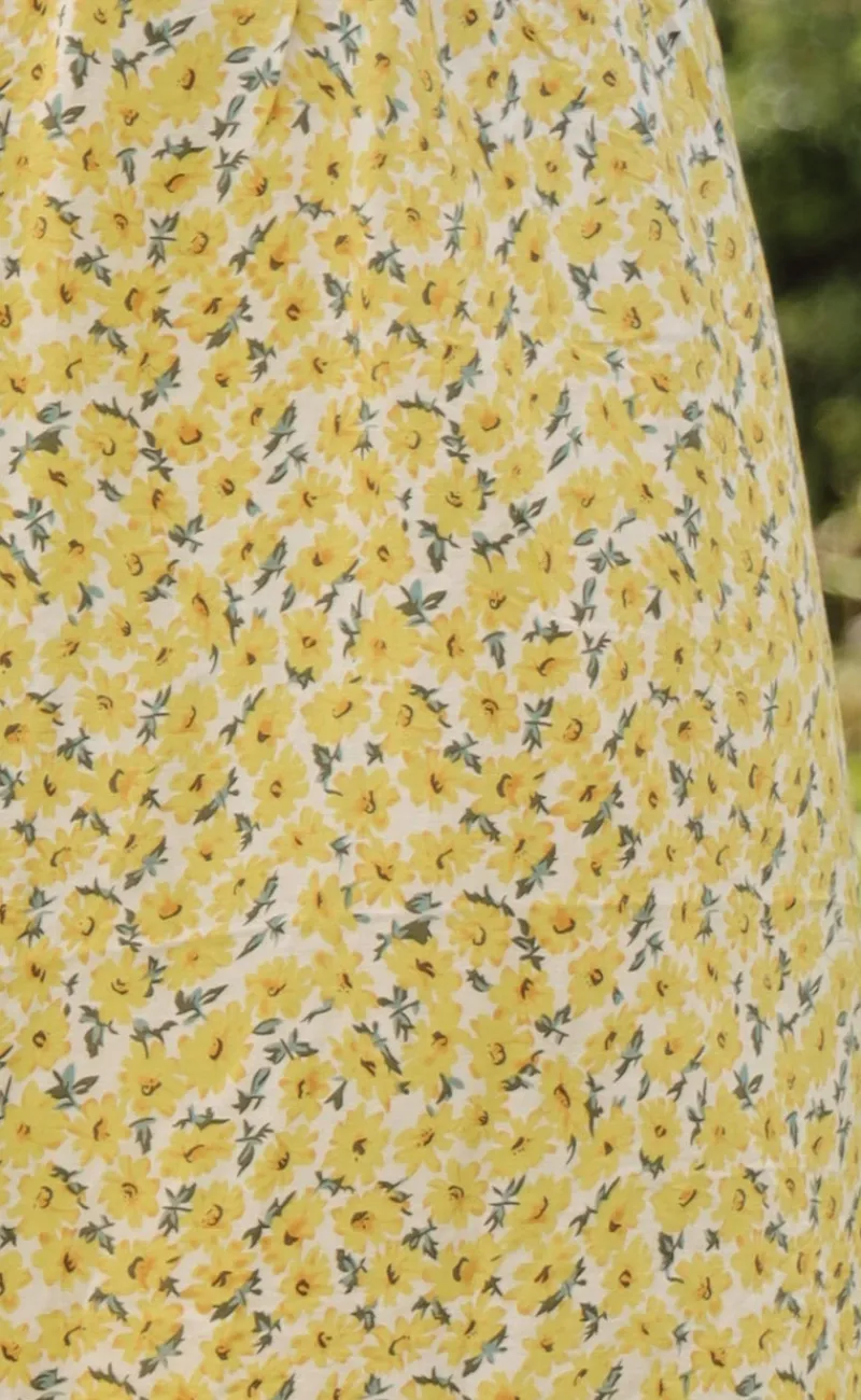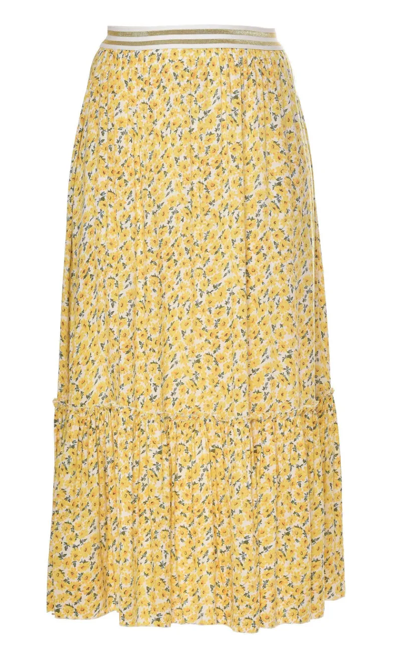 Smuk nederdel fra INA Copenhagen i hvid med gule blomster og grønne stilke.