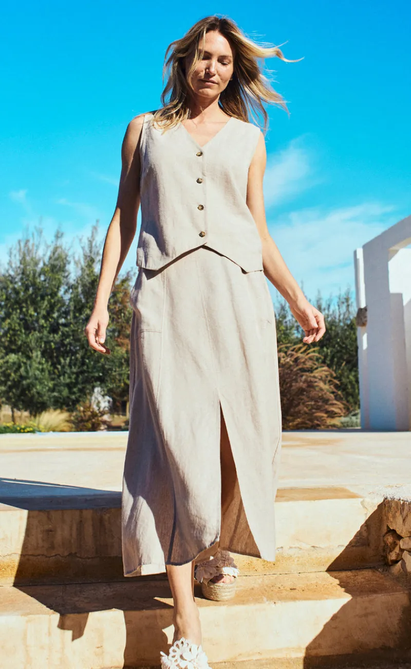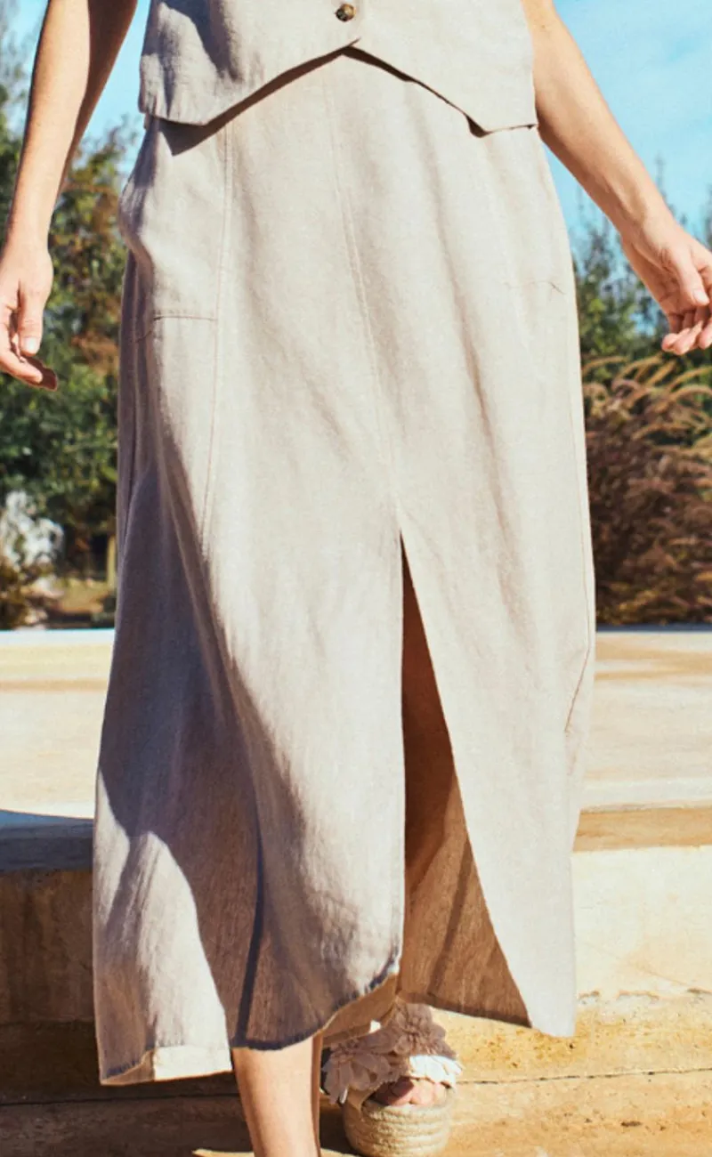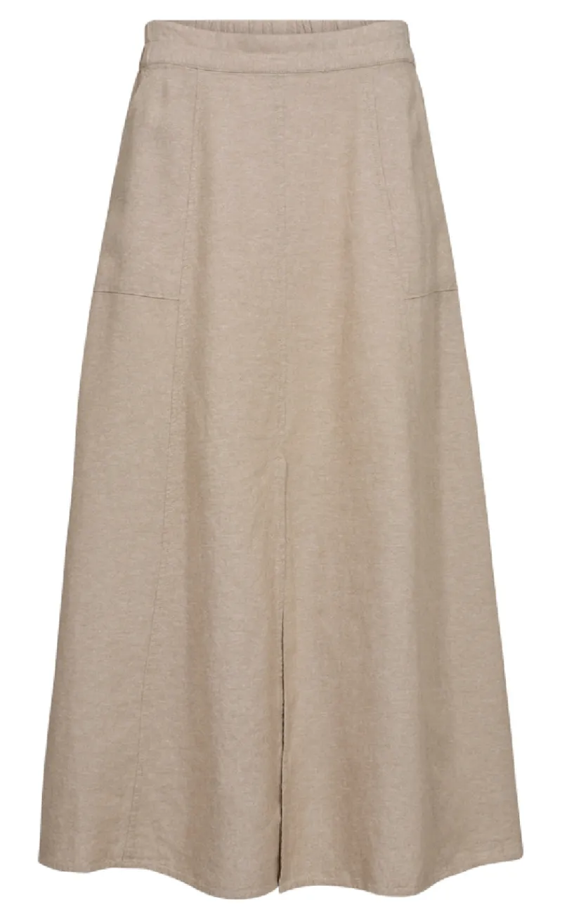 Maxi, hør nederdel fra Freequent i en flot sand farve.