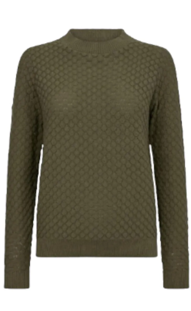 Pulloveren er med lange ærmer og rund halsudskæring.