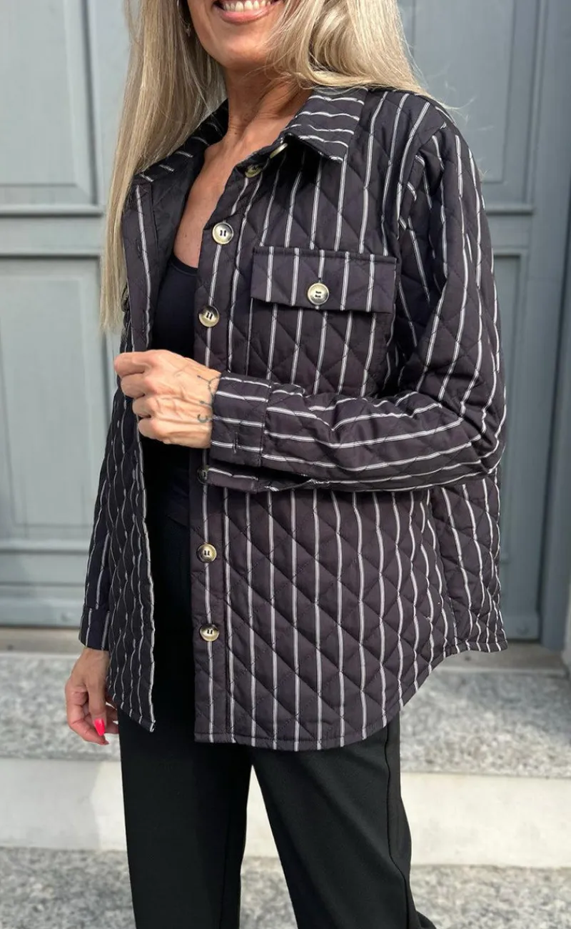 Smart jakke fra INA Copenhagen i sort med hvide striber.