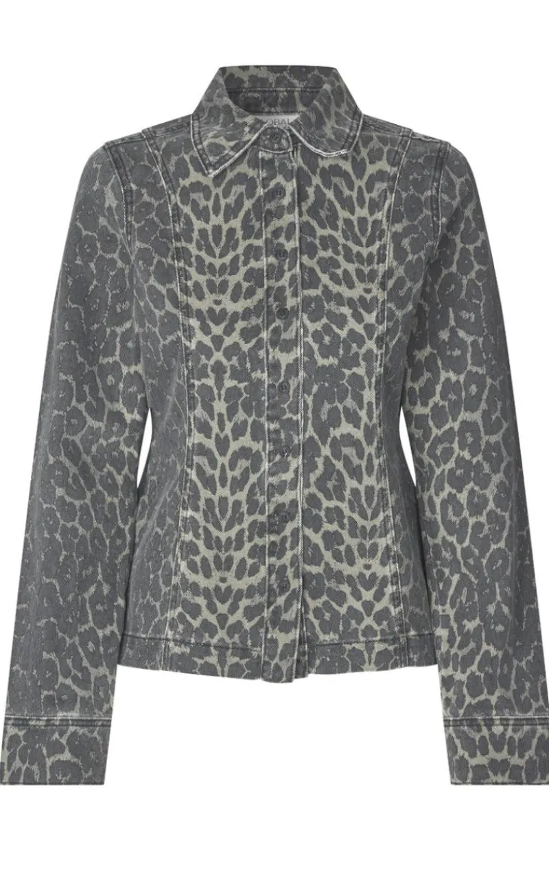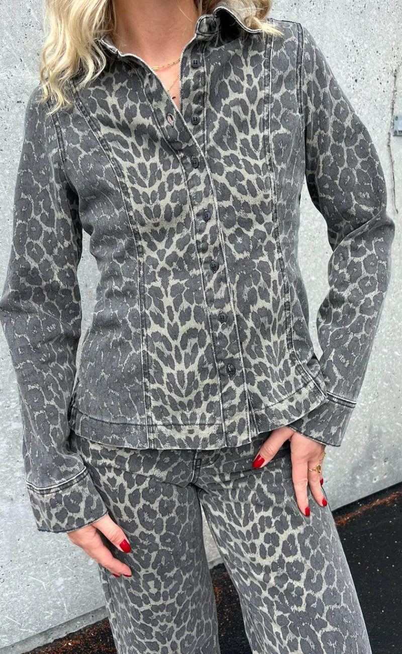 Cool denim skjorte fra Global Funk i det moderne leopardprint.