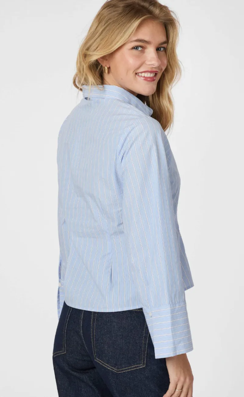 Skjorten er kropsnær, brede ærmer og manchetter.