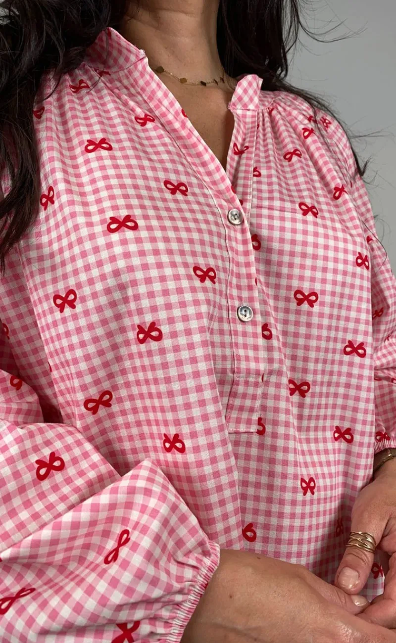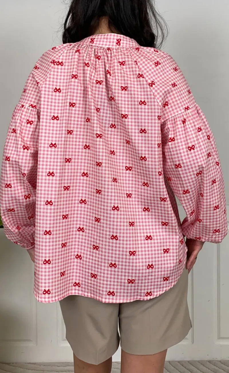 Oversize raglan skjorte i et ternet print, med små detaljer rundt på skjorten.
