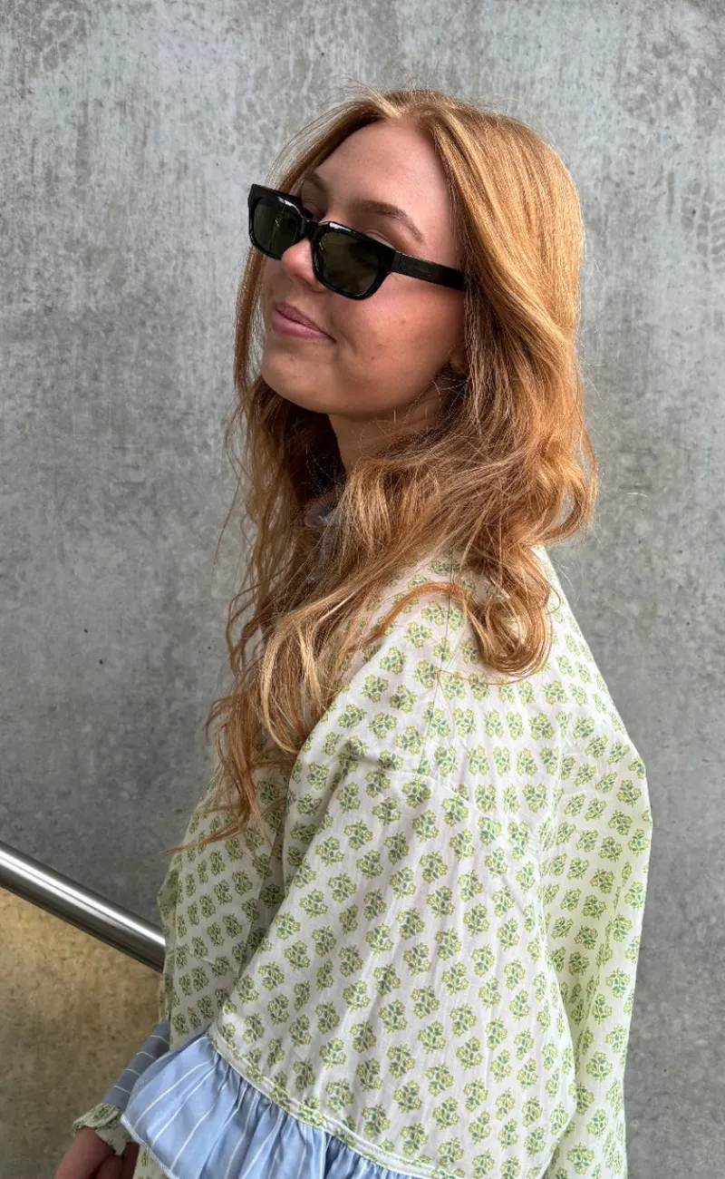 Disse solbriller har et smalt ovalt glas, og er perfekte til at pifte et outfit op!