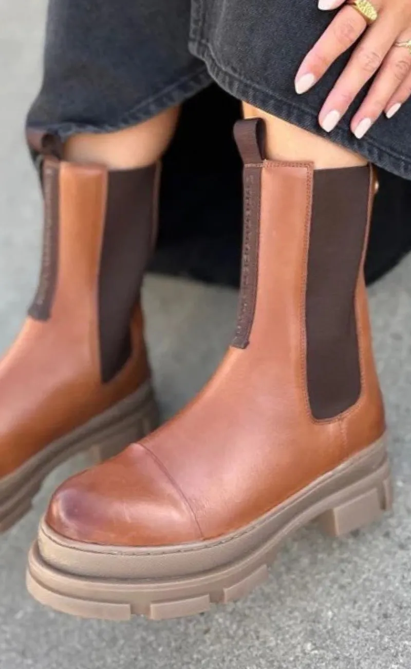 Smukke støvler fra Copenhagen Shoes i lysebrunt/cognac skind med en mørkebrun sål.
