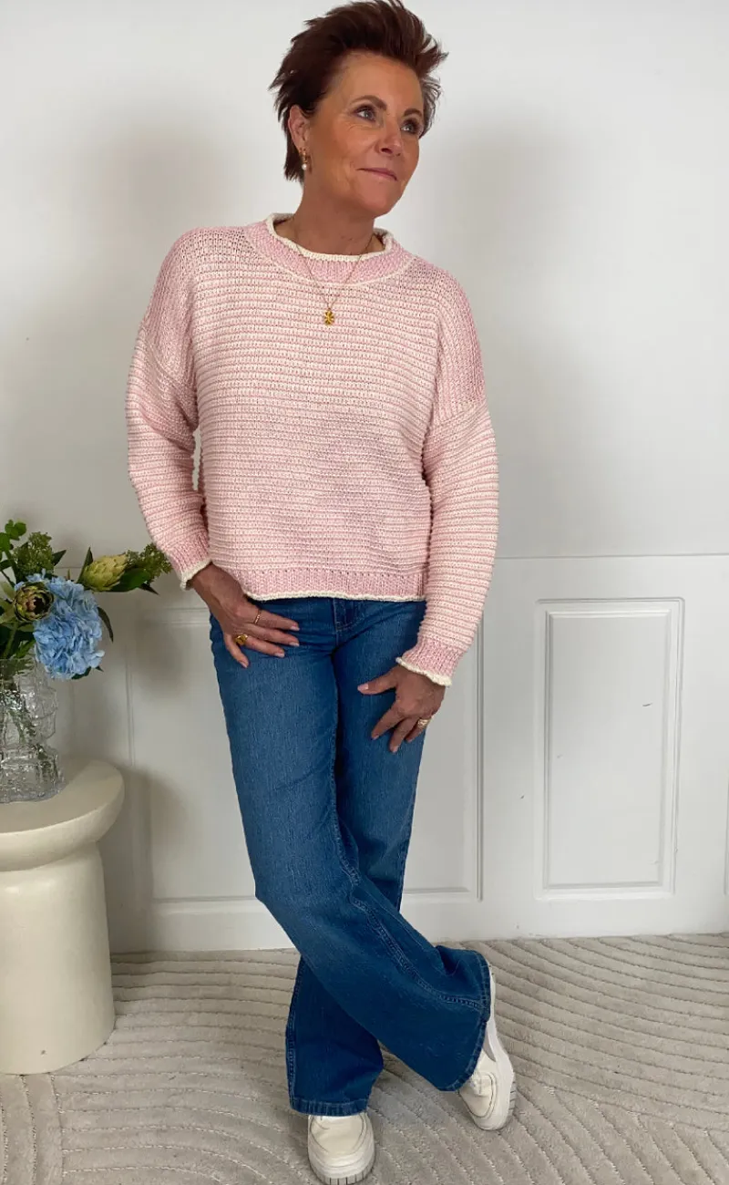 Flot og yndig striktrøje fra Marta Du Chateau i en lyserød farve.