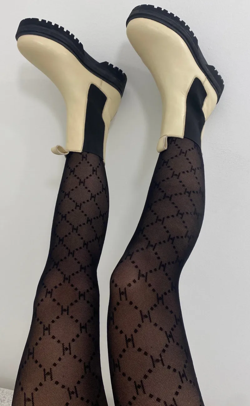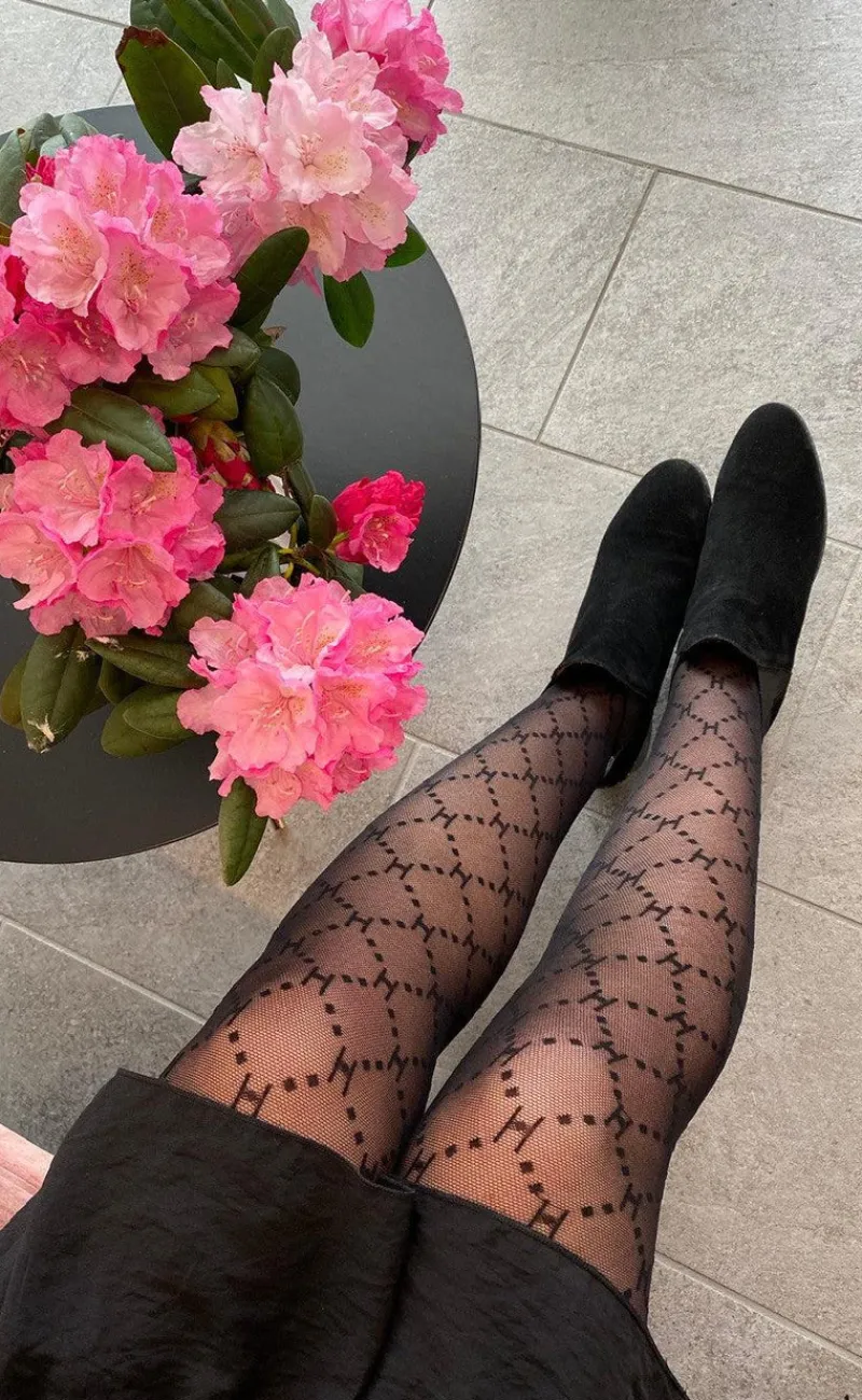 Fine strømpebukser med et sort mønster.