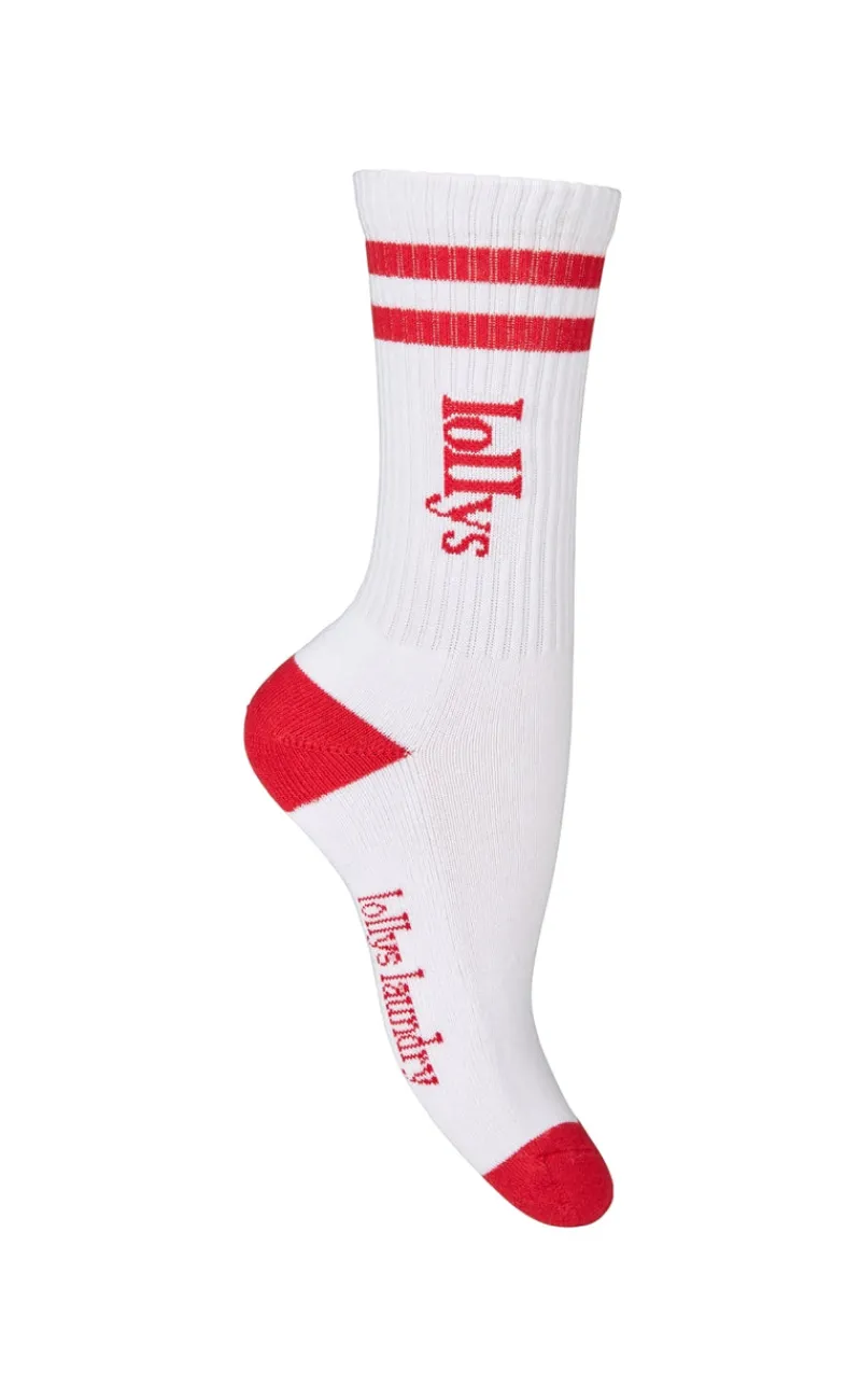 Smarte onesize strømper fra Lollys Laundry med røde detaljer.