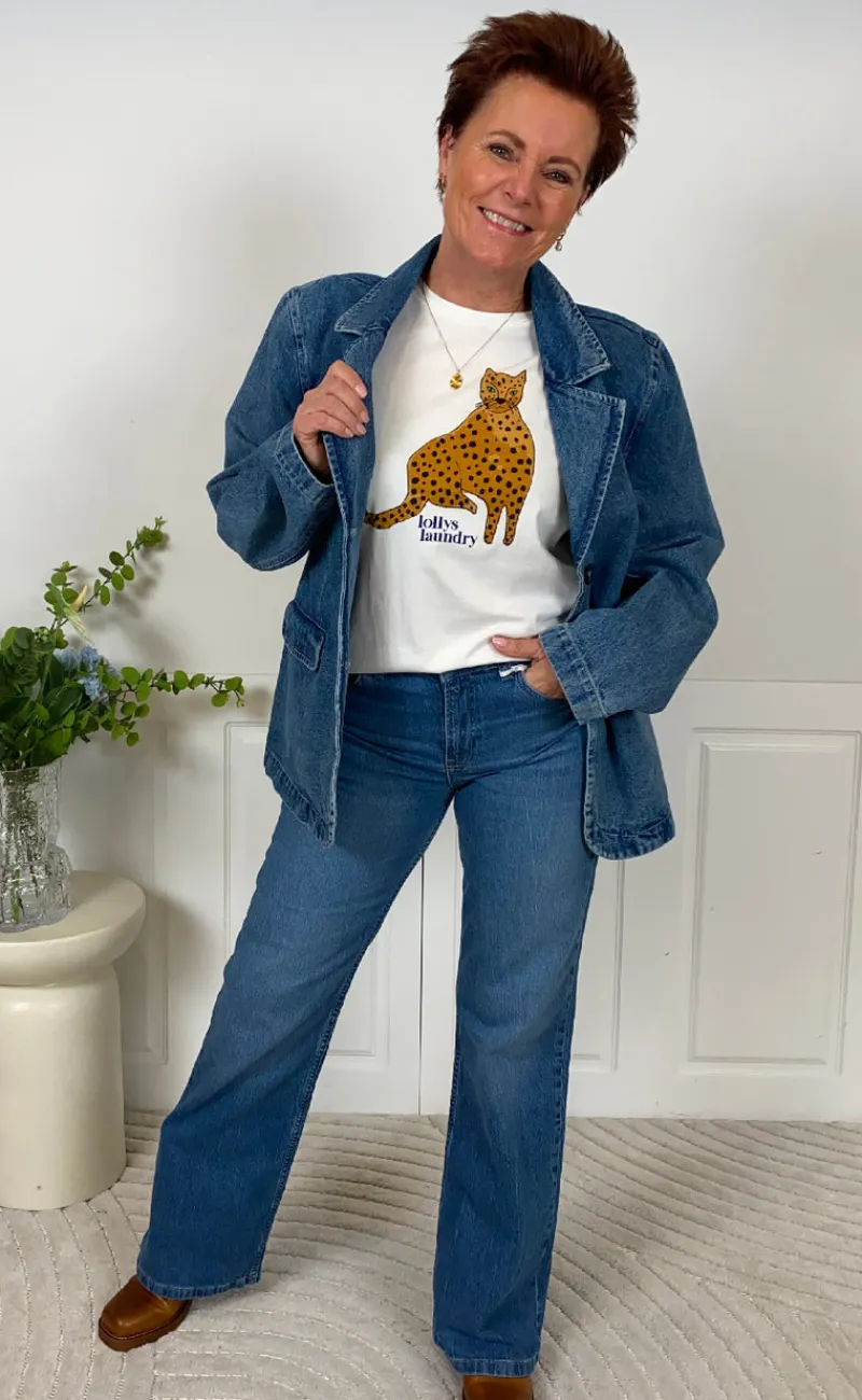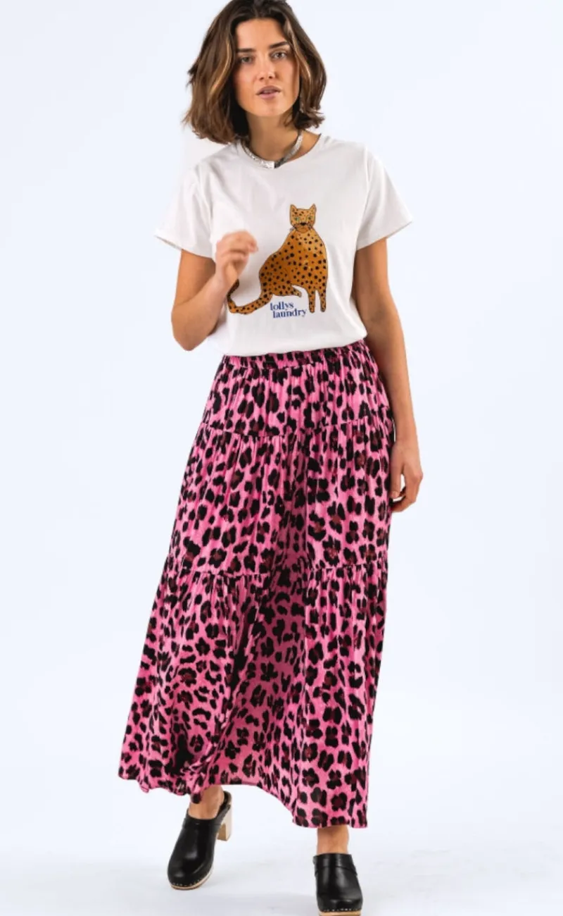 Sød og unik t-shirt fra Lollys Laundry i hvid, med en leopard fortil.