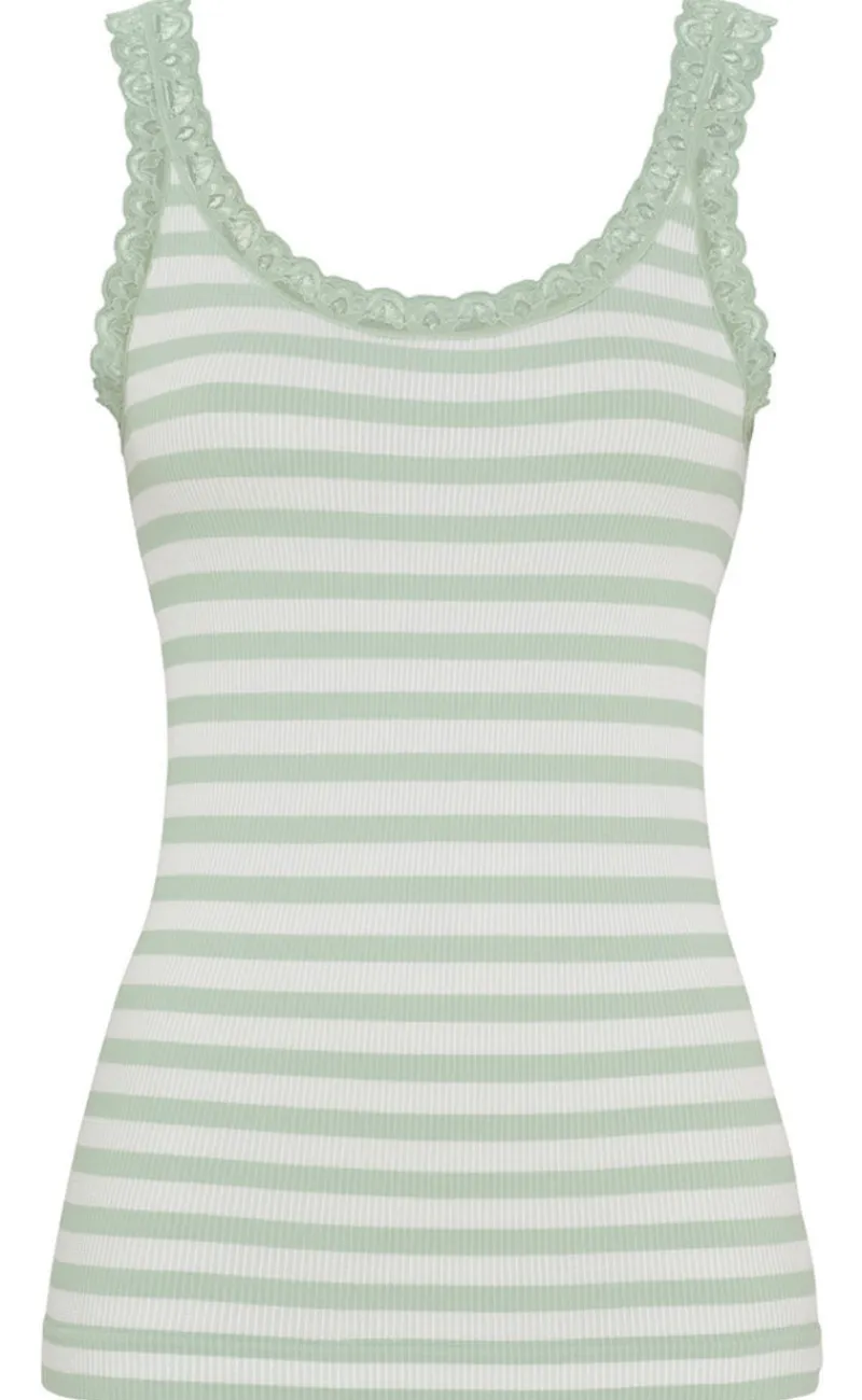 Fin top fra Tim & Simonsen med striber i grøn og hvid.