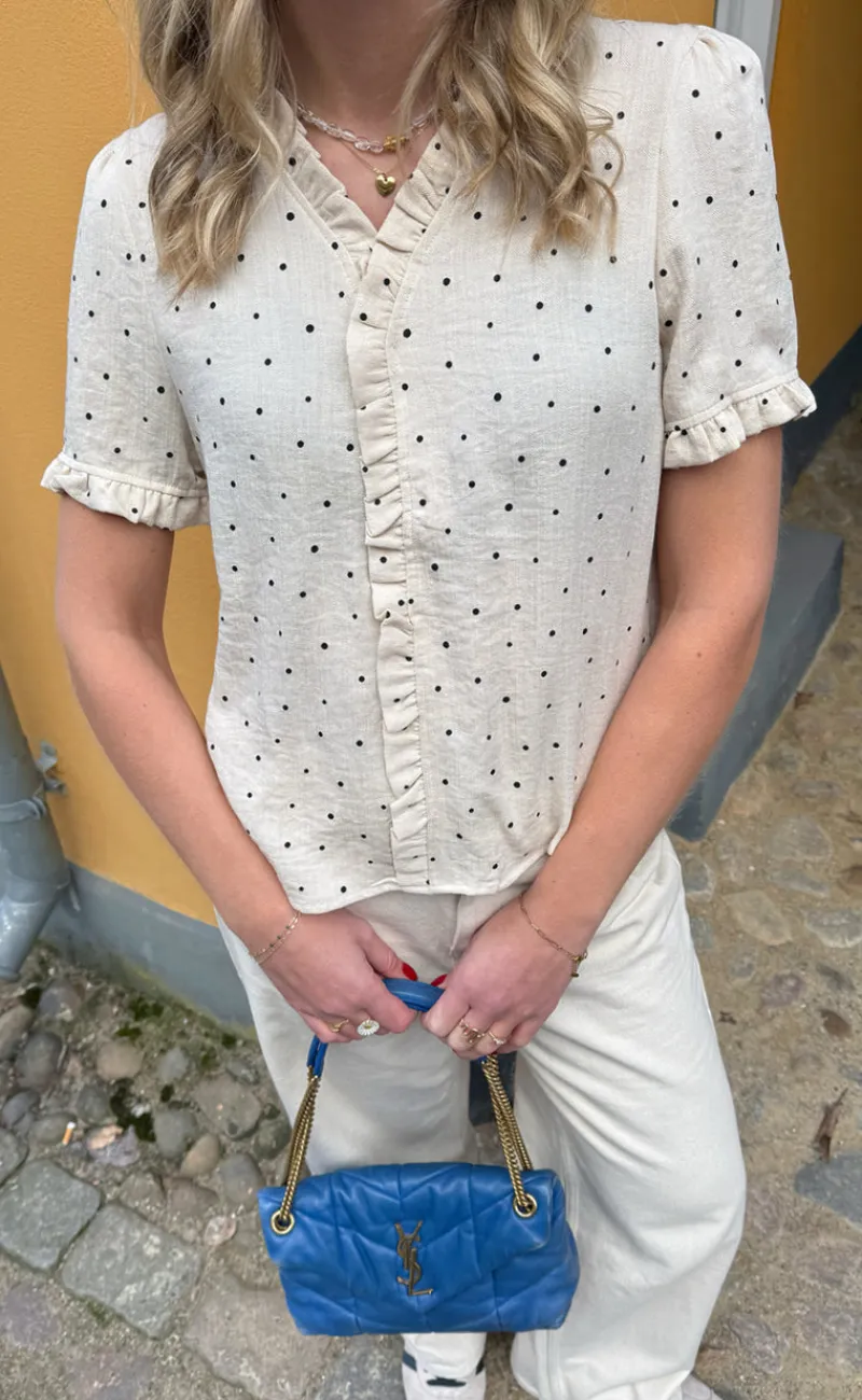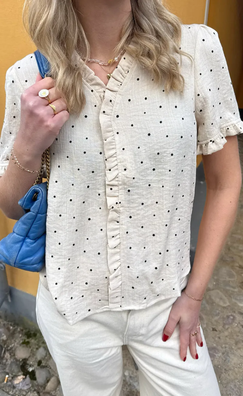 Smuk t-shirt fra INA Copenhagen i off white med sorte prikker.