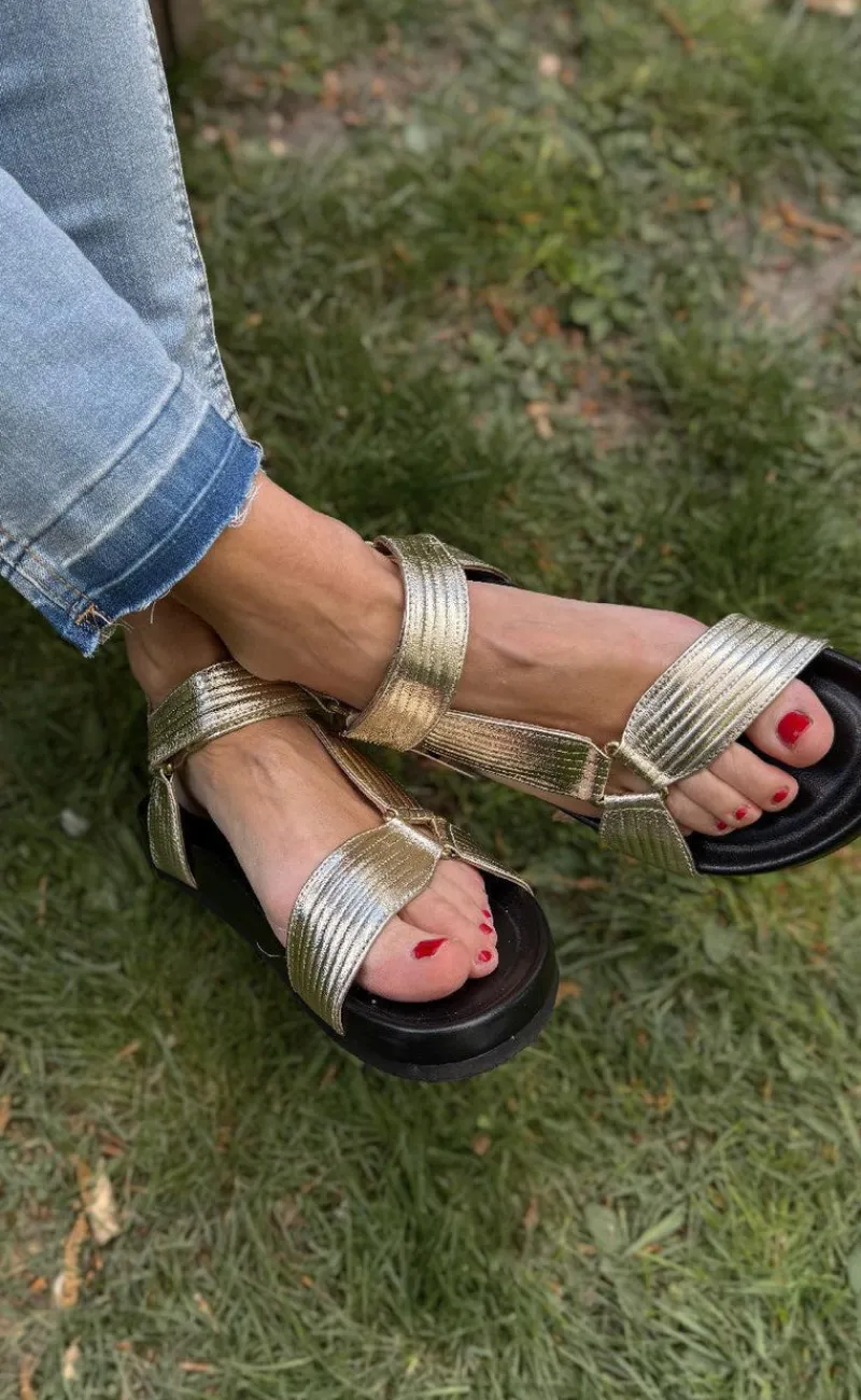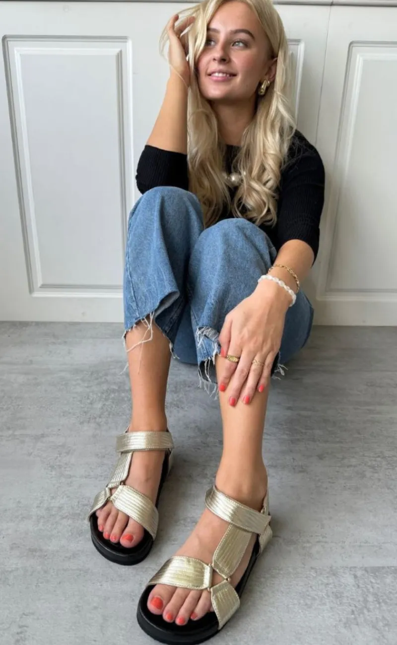 Sandalerne har nogle super fine detaljer, som får den til at se ekstra eksklusiv ud. Skoene kan justeres med velcro, og er fremstillet i et dejligt blødt materiale at have på!