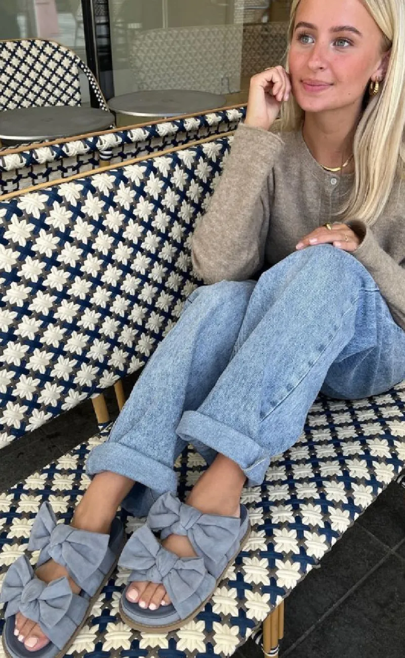 Disse sandaler kombinerer komfort med et stilrent design, der passer til de varme sommerdage. De har to store sløjfer på toppen.