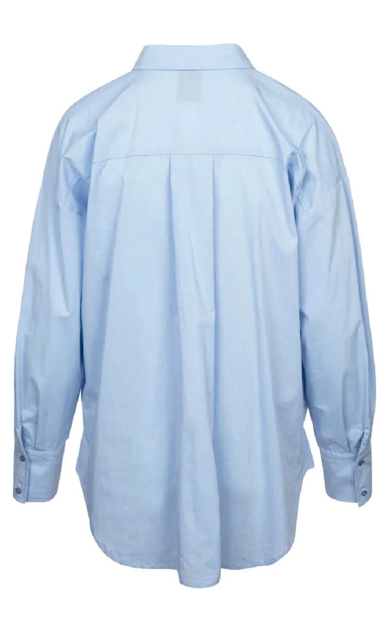 Cool skjorte fra Luxzuz i blå med en smuk aftagelig blomst ved skulderen.