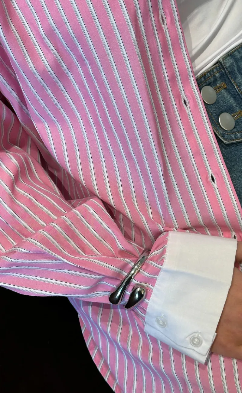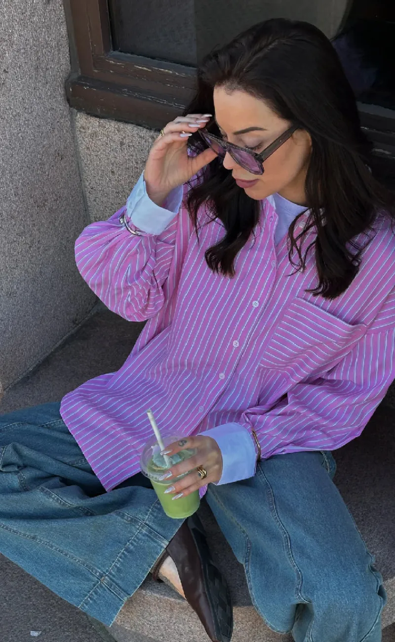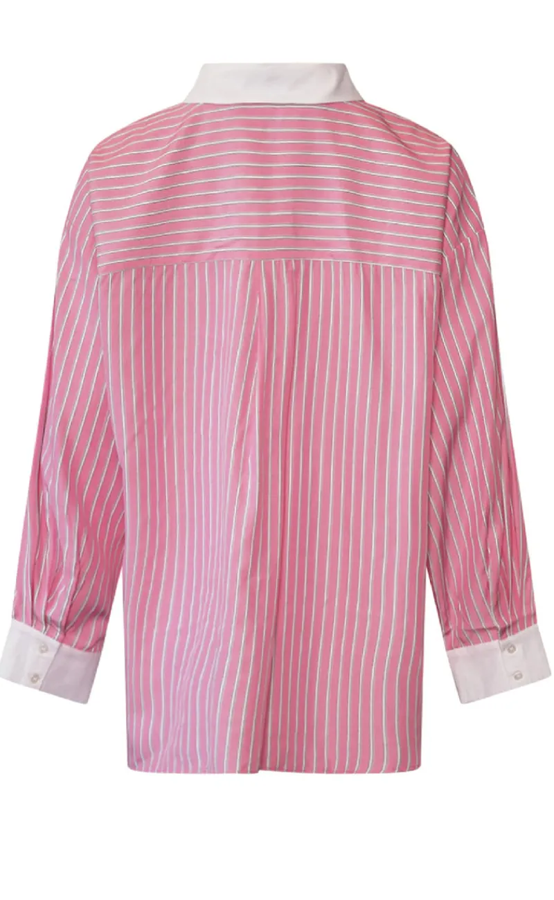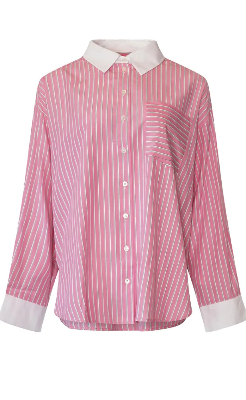 Smuk, stribet skjorte fra Noella i lyserøde nuancer.