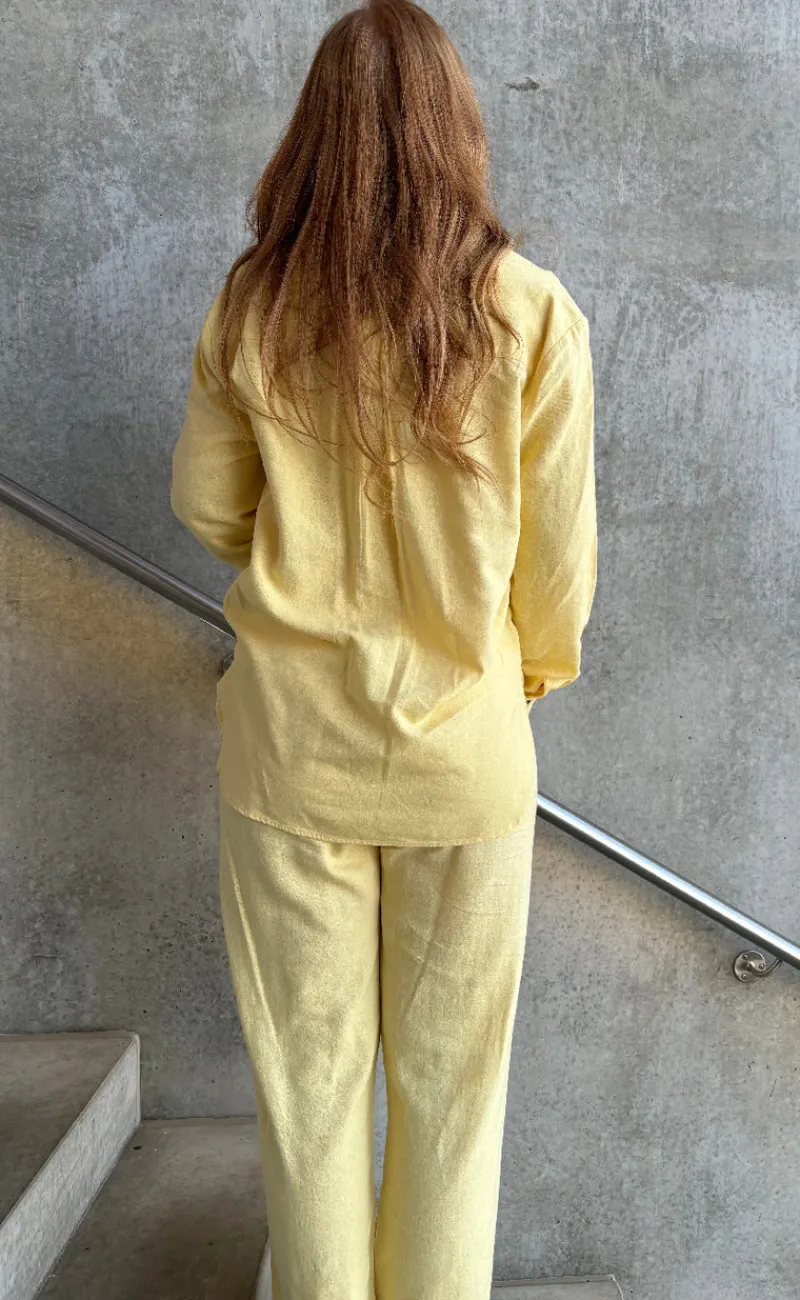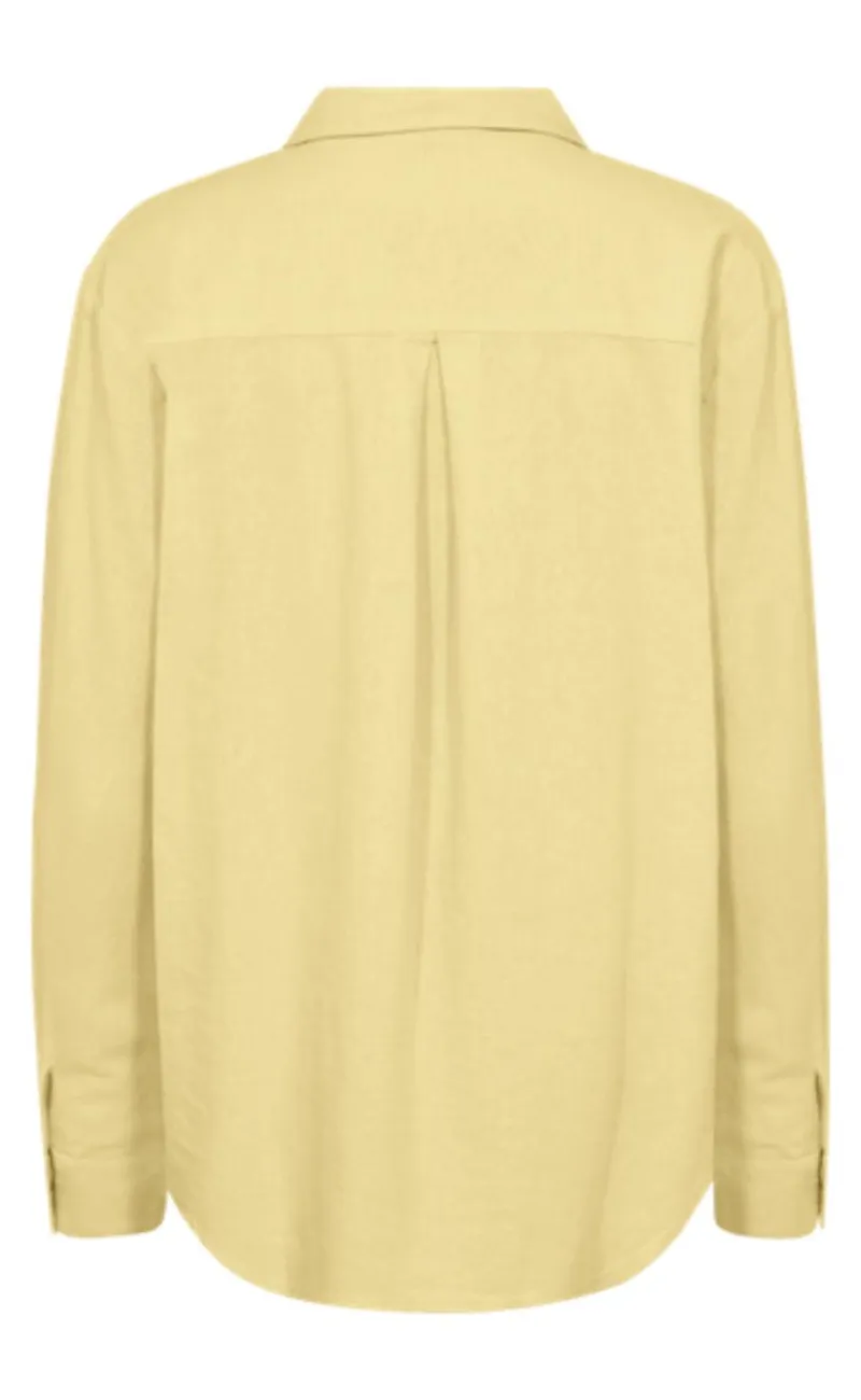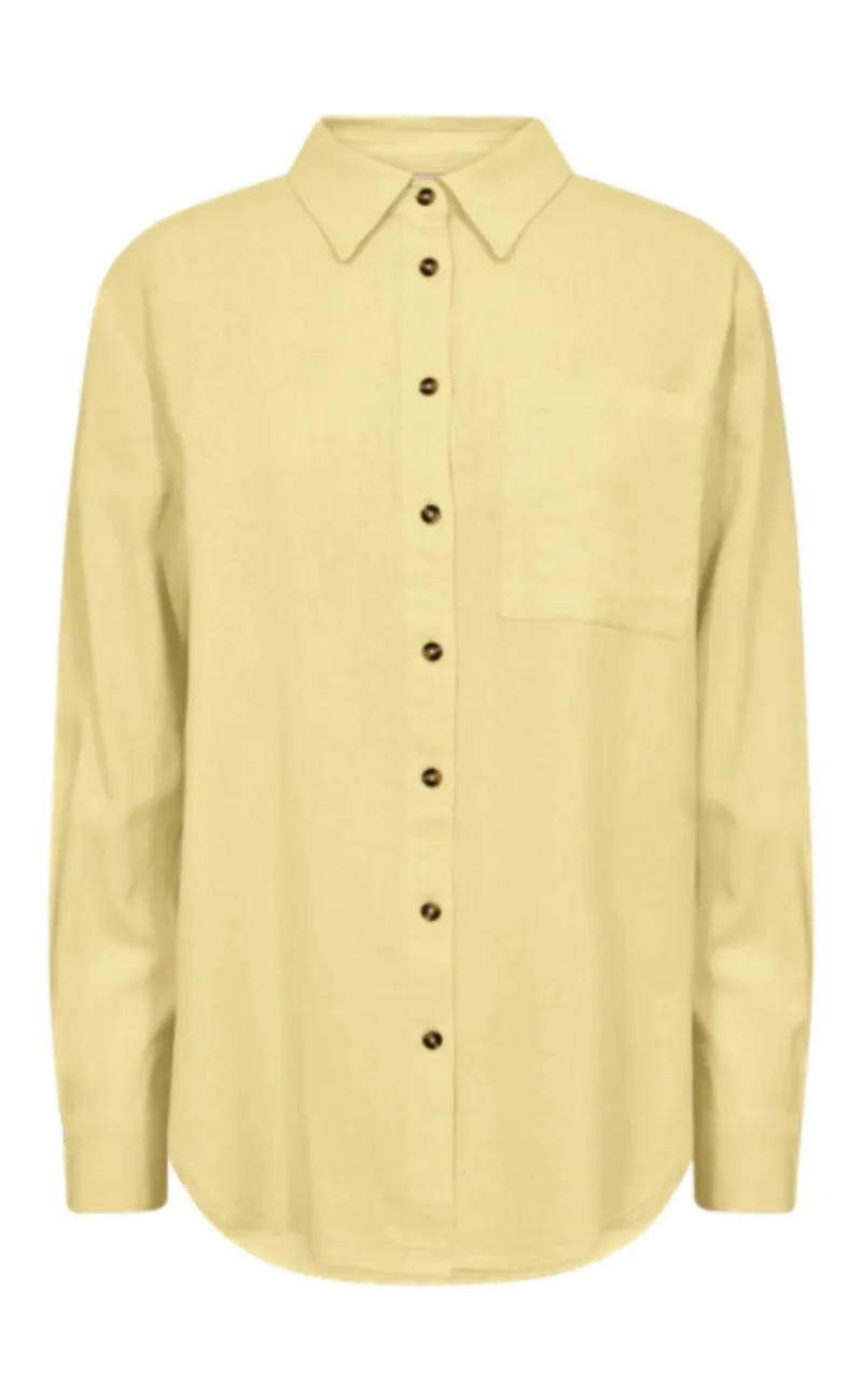 Skjorten har lange ærmer, er gennemknappet, en klassisk skjortekrave samt én brystlomme.