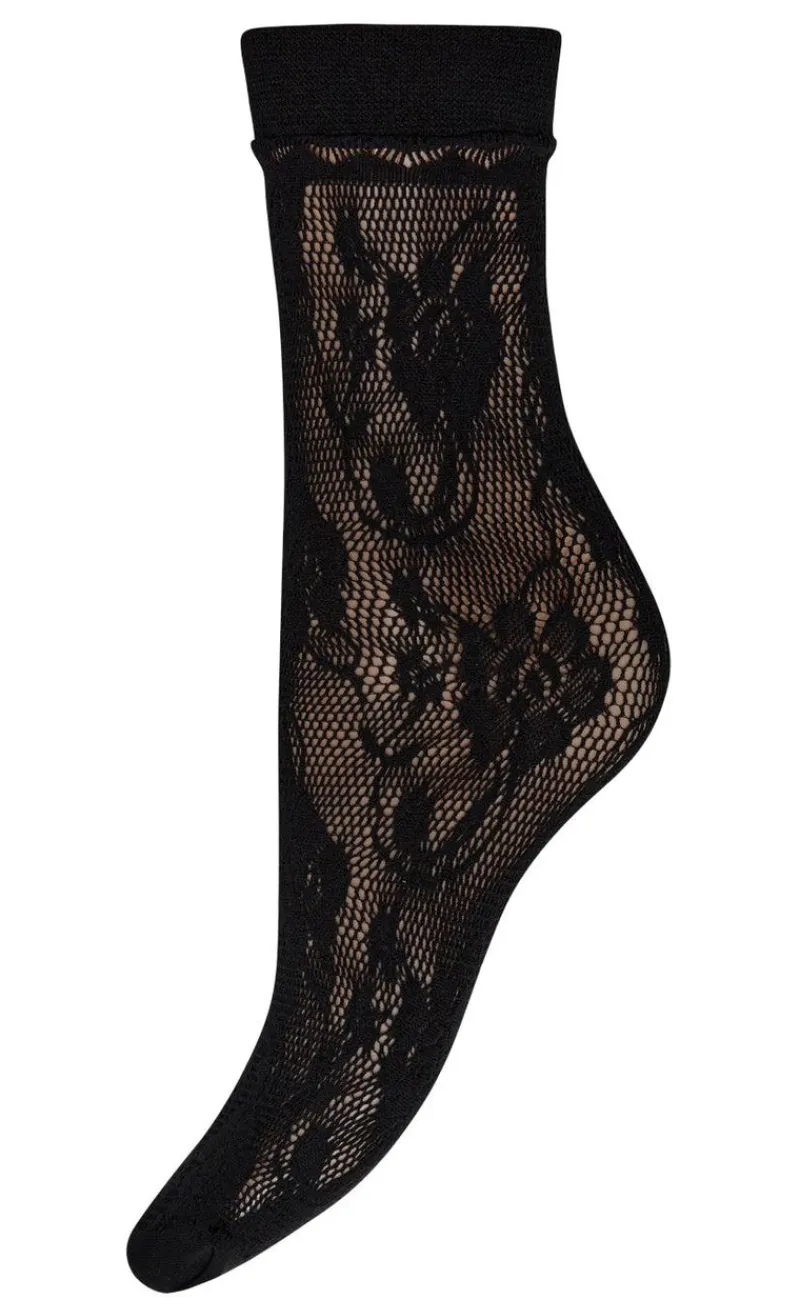 Strømperne er sorte og har blonder.