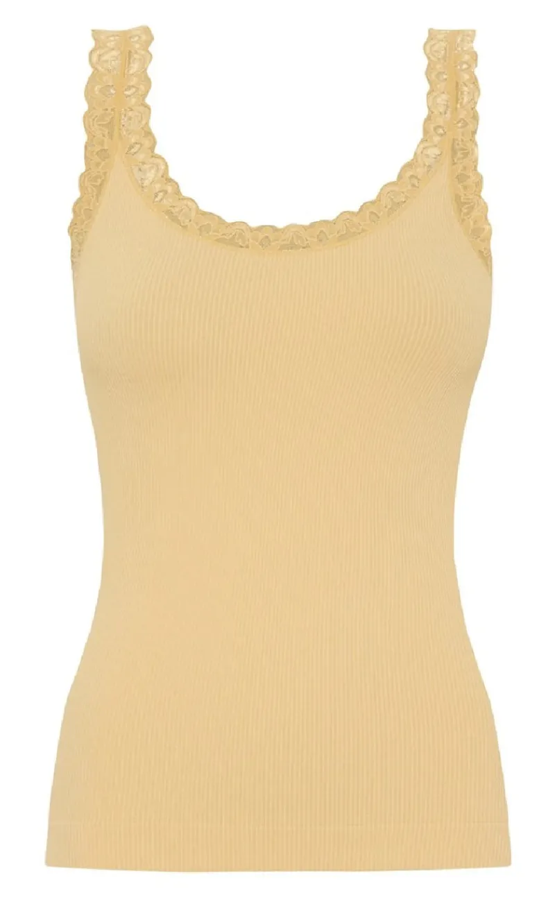 Lækker basic top med blonder fra Tim & Simonsen i gul.