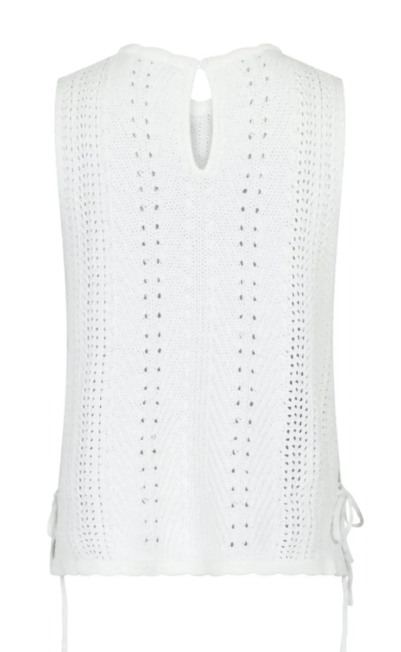 Toppen er ærmeløs og har et hæklet look.