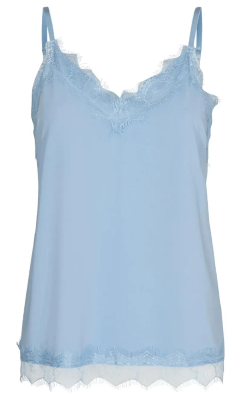 Toppen har rigtig flotte blondedetaljer, som gør toppen elegant.