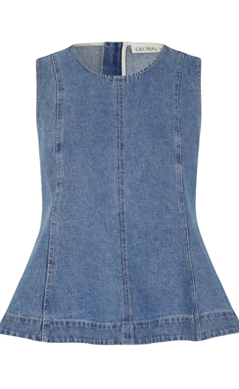 Toppen har ingen ærmer med en lynlås i ryggen.